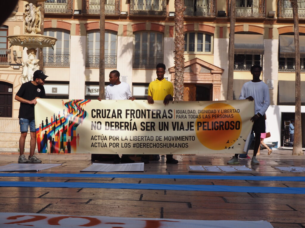 En el suelo de la plaza se dispuso una larga lista de nombres de personas refugiadas muertas entre 1993 y 2025, de la campaña «United Against The ‘Fatal Policies of Fortress Europe» con información resumida sobre cómo, cuándo en qué circunstancias fallecieron: en ese periodo al menos 66.519 muertes pueden atribuirse a las políticas de Europa Fortaleza. Decenas de miles nunca se encuentran.