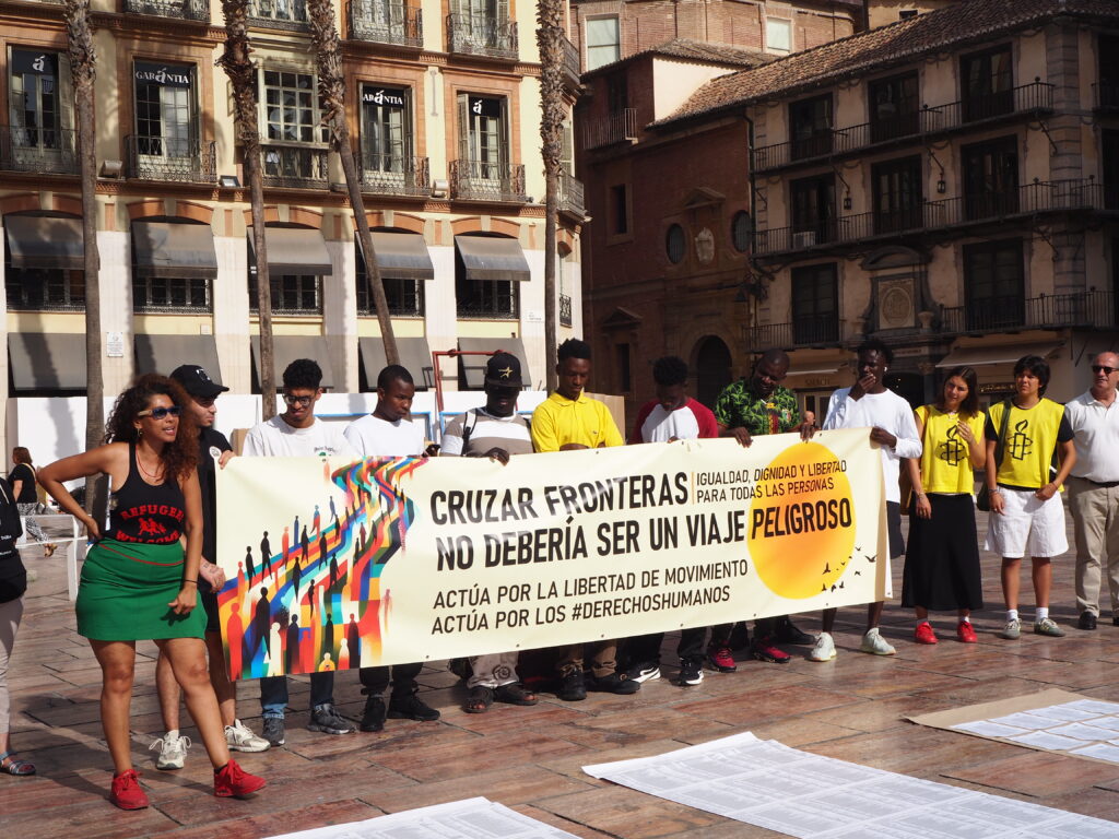 Este martes, junto a un grupo de entidades sociales –Amnistía Internacional, Asociación Tierra Matria, APDH y Fundación La Merced Migraciones– y con motivo del Día Mundial de las Personas Refugiadas el 20J, nos concentramos en la Plaza de la Constitución de Málaga para alzar la voz por la dignidad y los derechos de las personas refugiadas y exigir vías legales y seguras para quienes necesitan protección.