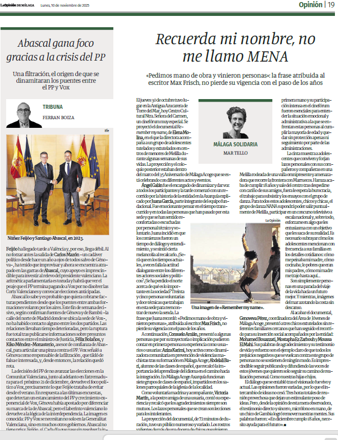 Málaga Acoge participa en el espacio ‘Málaga Solidaria’ que cada sábado se publica en el diario La Opinión de Málaga. El espacio es compartido por esta asociación, Arrabal, Cruz Roja Málaga, Incide y Prodiversa. Además, la entidad publica tribunas de opinión de forma periódica en los medios de comunicación para aportar su visión sobre diferentes temáticas. Aquí os dejamos los últimos. Si pinchas en las imágenes podrás leerlos: