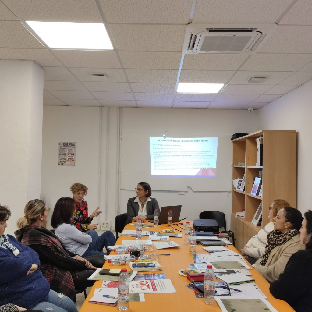 La actividad fue organizada por el Área Jurídica en colaboración con el Área de Género, y fue impartida por nuestra abogada Liliana, quien compartió su experiencia y conocimientos. Durante la introducción, se destacó el trabajo que nuestra entidad realiza con mujeres en diversas situaciones de vulnerabilidad, poniendo un énfasis especial en aquellas que han sufrido violencias machistas. La importancia de aplicar una perspectiva de género y de trabajar con un enfoque interseccional se presentó como una herramienta clave para facilitar el trabajo en el contexto complejo en el que se encuentran estas mujeres.