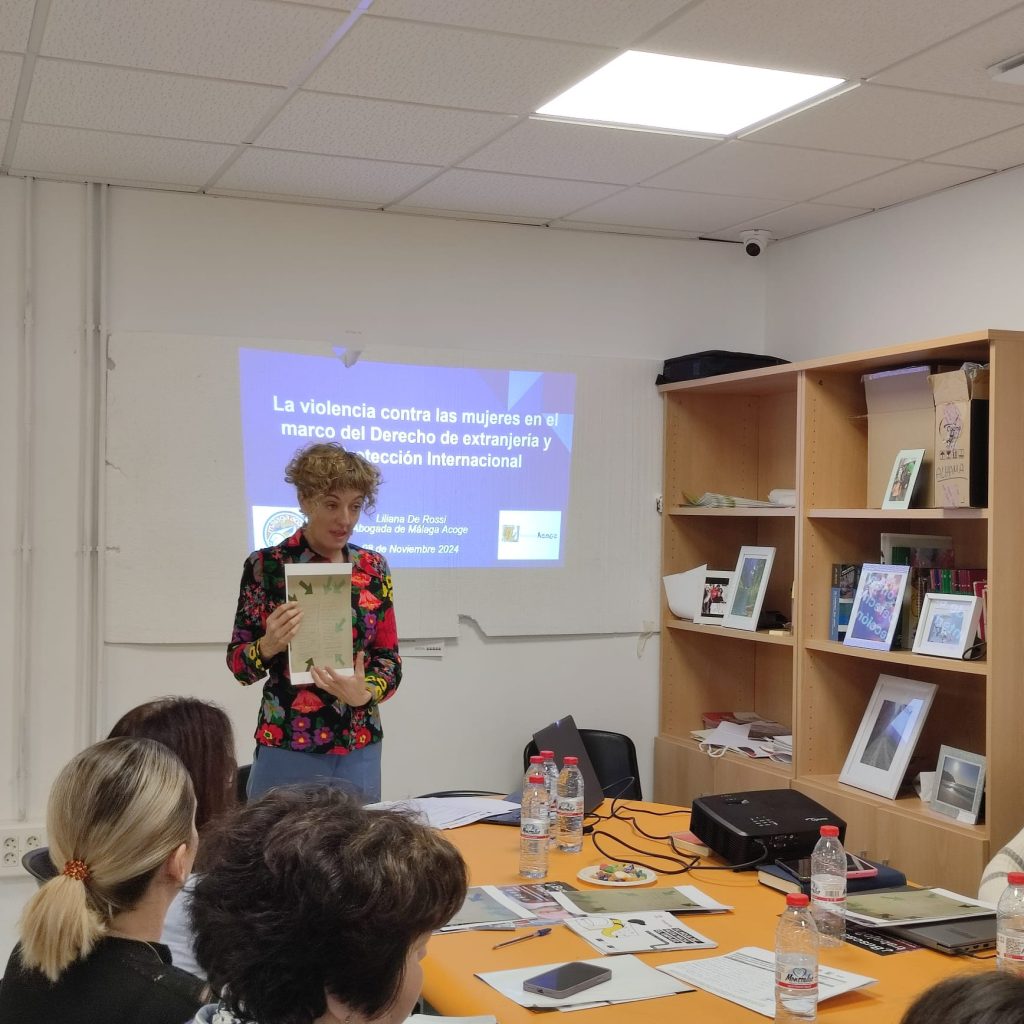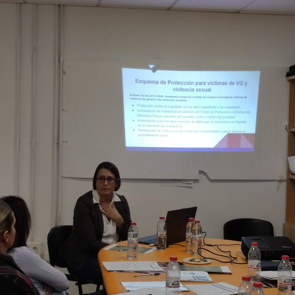 Carmen Moya, una de las profesionales del Centro de la Mujer que organizó la actividad, también participó activamente en la formación. Juntas, abordaron la violencia contra las mujeres desde el marco del derecho de Extranjería y la Protección Internacional. El objetivo principal fue ofrecer una visión crítica sobre los mecanismos de protección que la normativa de Extranjería y la Protección Internacional articulan para salvaguardar a las mujeres migrantes.