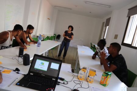 El taller ha tenido lugar del 1 al 4 de agosto en nuestra sede de calle Ollerías, que se convirtió en escenario para la grabación de un cortometraje ideado y grabado por los jóvenes con sus móviles y equipo de audio profesional. «Vamos a grabar, chicos», animaba Leo Jiménez, técnica de Sensibilización de Málaga Acoge durante el segundo día de esta iniciativa en las que no faltaron dinámicas para reflexionar sobre los prejuicios existentes hacia este colectivo y cómo contrarrestarlos.