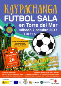 Nuestra sede de la Axarquía anda preparando una actividad muy especial para el sábado 7 de octubre. Se trata de un partido de fútbol sala en el que participarán personas que apoyamos en Málaga Acoge y desde Cruz Roja de Vélez Málaga. Tendrá lugar en las pistas del Paseo Marítimo de Torre del Mar a las 11 horas. El objetivo de esta actividad, bautizada como Kaypachanga, es disfrutar de una jornada de convivencia al aire libre realizando una actividad conjunta.