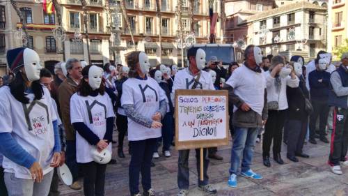 Tras la conferencia de prensa ha tenido lugar un flasmob en la Plaza de la Constitución para reivindicar que todos somos personas y tenemos derecho a un alojamiento digno. Varios jóvenes extutelados que apoyamos en Málaga Acoge han participado en la actividad.