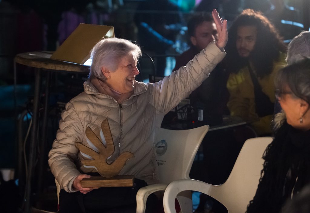 Como tercera acción participamos en el acto de entrega de reconocimientos a Adela Jiménez y Luis Pernía, precedida de la música de nuestro voluntario David Chaoman. Nuestra voluntaria Charo Rubio leyó una semblanza de Adela y su hermana Teresa llegó de sorpresa desde Barcelona para arroparla en el homenaje. «Adela ha demostrado bien que su voluntariado es su compromiso de vida», dijo Charo antes de que nuestra compañera Manmen Castellano le entregase el reconocimiento.