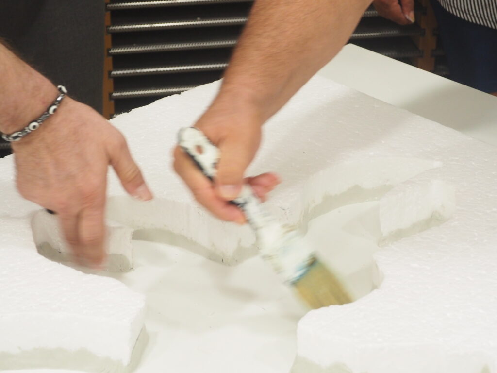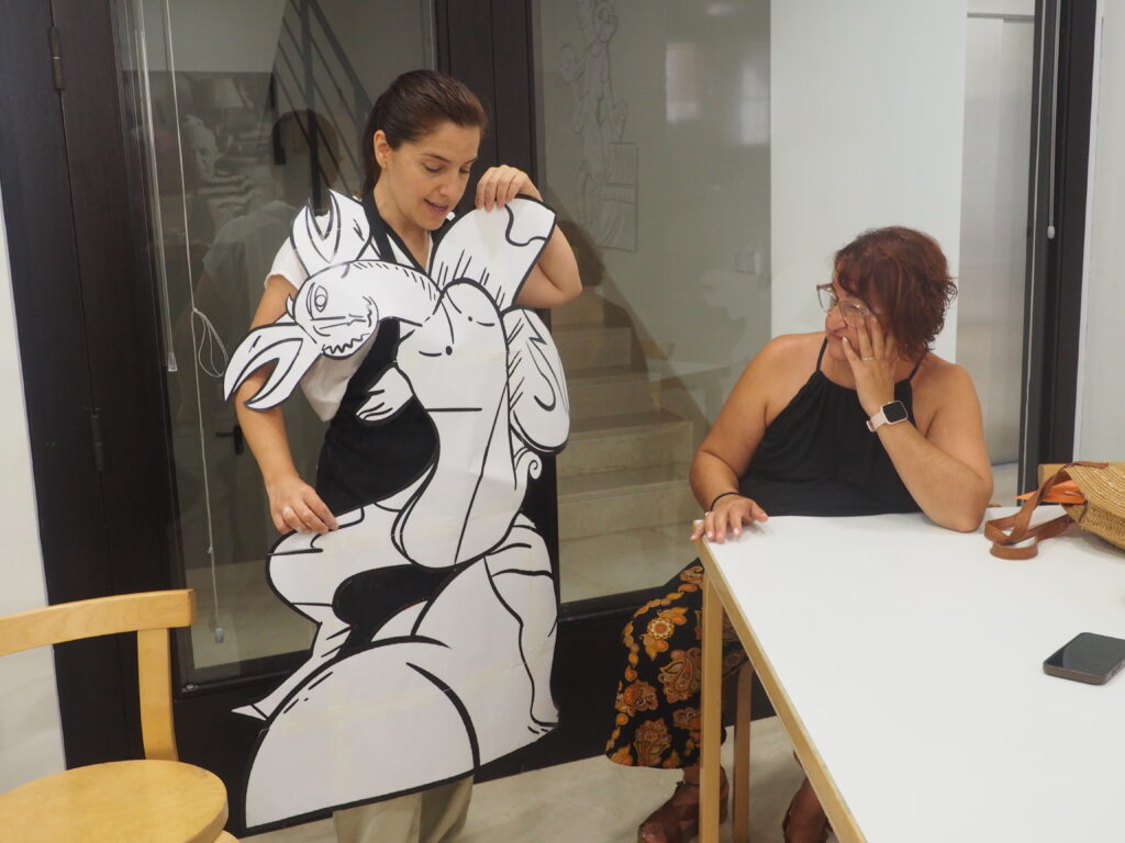En el taller, la colaboración y la creatividad fueron protagonistas. Mientras José y Baldomero se encargaban de crear la mezcla perfecta de yeso combinando polvo y agua, sus compañeros y compañeras —Miguel, Concepción, Salvador y María— emprendieron la tarea de sellar con arcilla blanca un molde de corcho, preparándolo para verter la mezcla líquida de escayola. Todo ello, para conseguir un molde de una criatura fantástica, inspirada en las formas mitológicas que tanto fascinaban a Picasso.