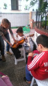 Un grupo de niños y niñas que apoyamos en Málaga Acoge participó el pasado viernes en un taller impartido por nuestros voluntarios David y Mary, músicos que forman el dúo Ajnas y que con sus acordes andaluces de inspiración mozárabe llenaron de ritmo y sonrisas el patio del CEIP Prácticas nº1 de Málaga.