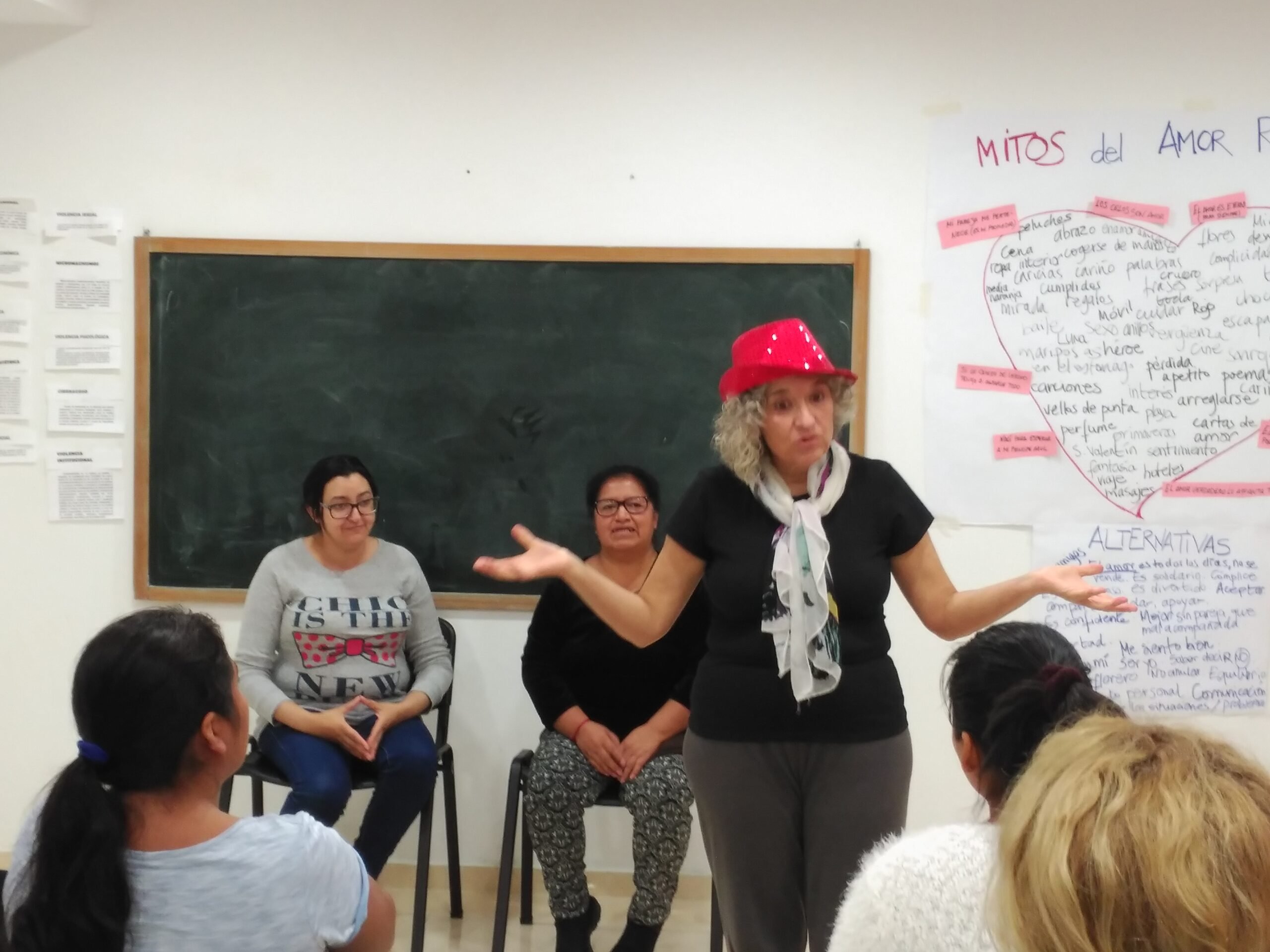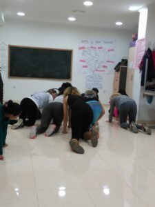 Durante los talleres, en los que colaboró nuestra voluntaria Mariam, se habló del proceso teatral y de su uso para la transformación social, del cuerpo como herramienta y espacio de reflexión y de la necesidad de crear espacios de mujeres para el empoderamiento, la acción social y la denuncia.