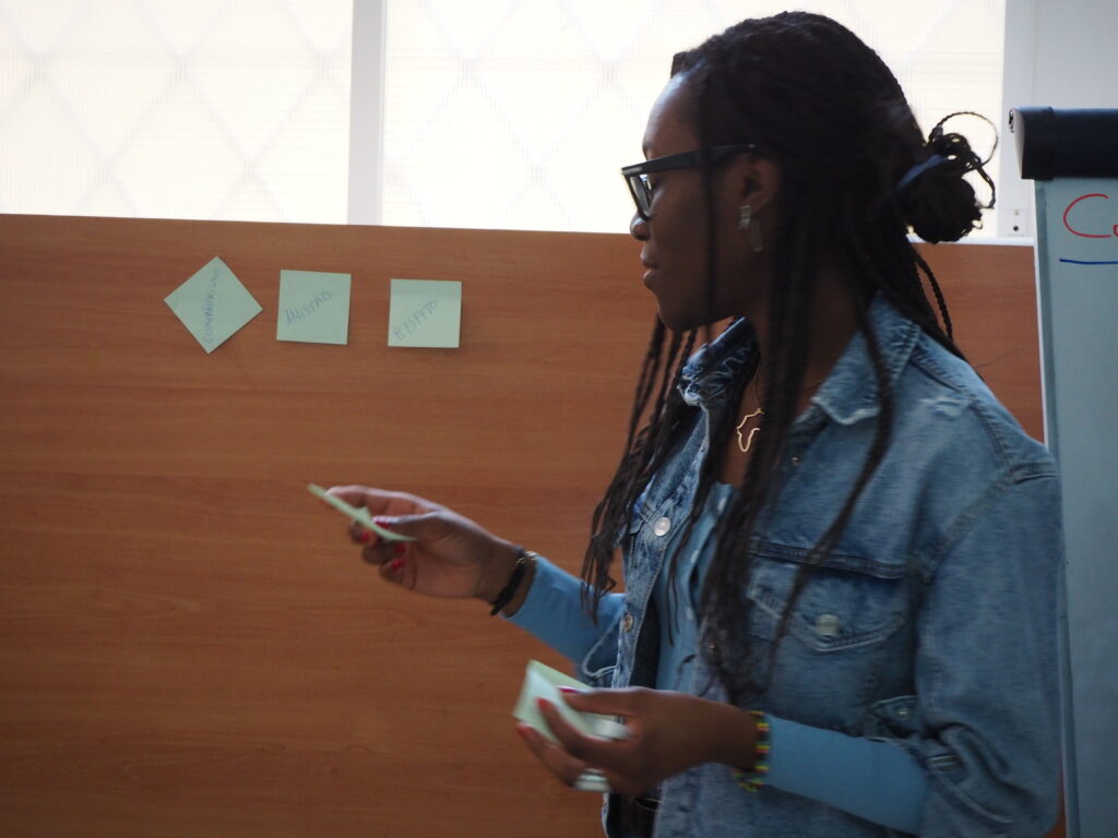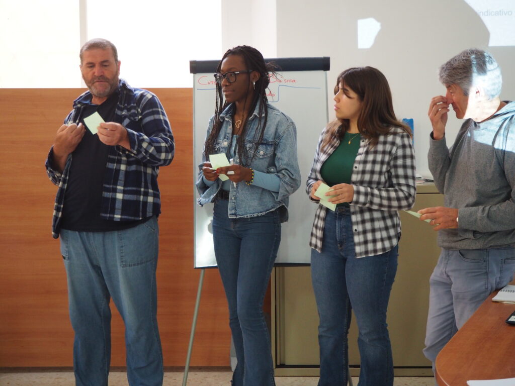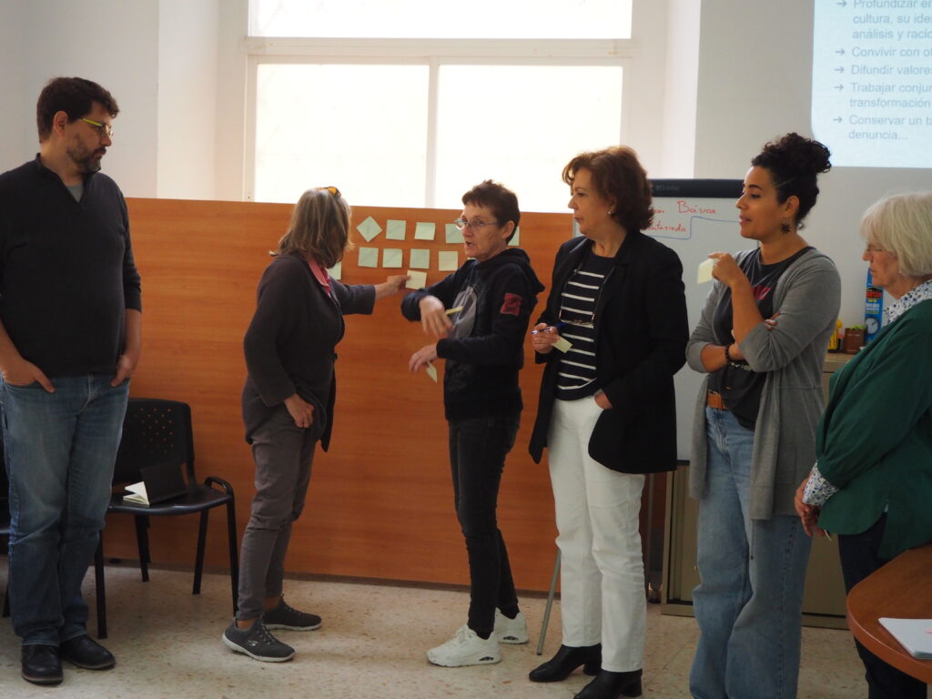 Una de las dinámicas más llamativas de este encuentro ha sido «Calibrar valores», en la que las personas expusieron los valores personales fundamentales de su día a día y los comparamos con los valores de la entidad. Empatía, respeto, compañerismo, dignidad, resiliencia y amor fueron los valores más mencionados. Esta actividad permitió a las participantes reconocerse no sólo con Málaga Acoge sino también con el resto de compañeras y compañeros asistentes.